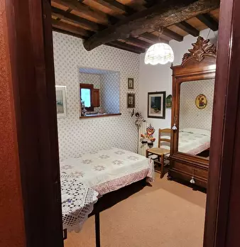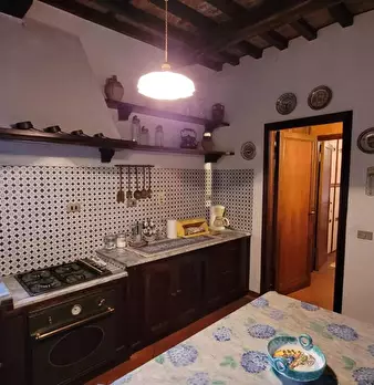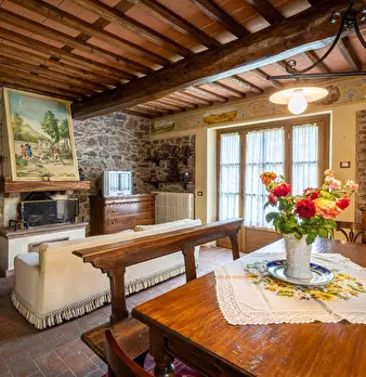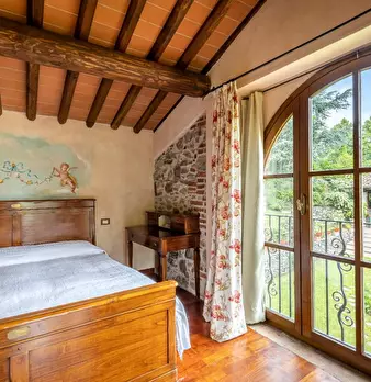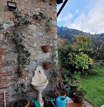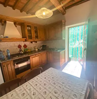 A pochi km da Lucca, in zona verde, soleggiata e panoramica, porzione di rustico di 100 mq disposto su due livelli corredato da terreno esclusivo di 5.400 mq in parte adibito a giardino, garage doppio e cantine per un totale di 50 mq al piano semi...