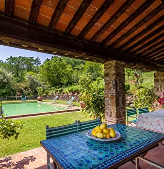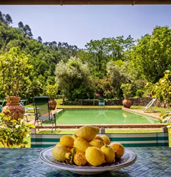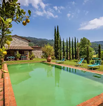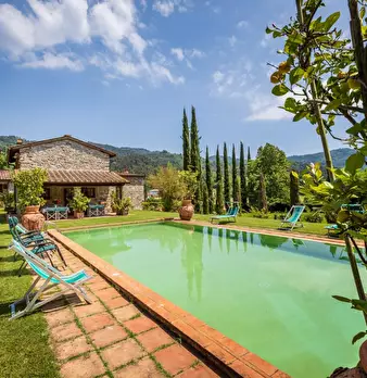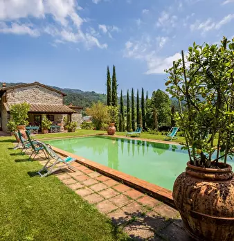 Prime Colline a Nord di Lucca a circa 15 minuti dalla citta e a 30 da Viareggio e dalla Versilia si propone in vendita Rustico di Lusso con Piscina e Campo da Tennis in erba; La proprietà circondata da oltre 3,5 ettari tra parco e terreno è posiz...