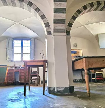 CALCI Vendesi antico fabbricato terratetto libero su tre lati un tempo facente di più ampia importante proprietà nobiliare risalente al 1700, usato come come frantoio. L'immobile si sviluppa su tre livelli per una superfice commerciale circa di 3...