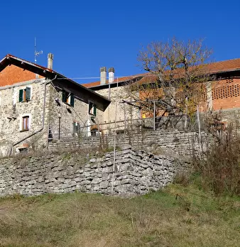 Cascina in pietra divisa in due unità abitative indipendenti, con magazzino avente accesso indipendente e terreni di varia natura per una superficie di mq 16.000
