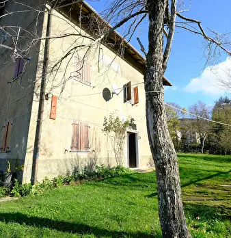 Casa indipendente disposta su tre livelli, divisa in tre appartamenti con giardino circostante e terreni per oltre 9 ettari. L'immobile è situato a poca distanza dalla strada provinciale