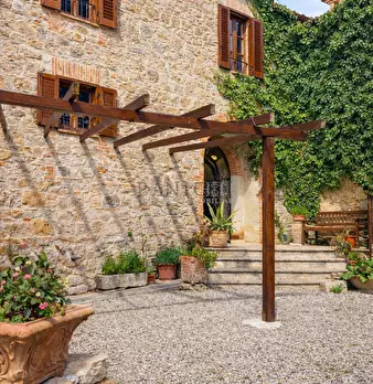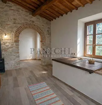 SOVICILLE, A POCHI KM DA SAN ROCCO A PILLI, INSERITO ALL'INTERNO DI UN BEL CASALE IN PIETRA, PORZIONE DI 120 MQ MOLTO BEN RISTRUTTURATA E POSTA AL PRIMO ED ULTIMO PIANO CON INGRESSO INDIPENDENTE DA SCALA ESTERNA CORREDATA DI GIARDINO PRIVATO DI 12...