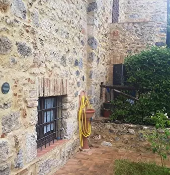 Casole d' Elsa _ loc. Lucciana in piccolo borgo ristrutturato vendesi porzione di casolare di 75 metri quadrati con ingresso da giardino privato e disposto su due livelli composto da al piano terra: ingresso, soggiorno con cucina in muratura, cami...