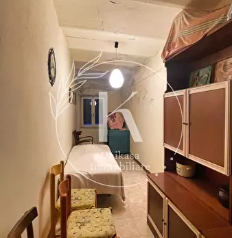 Appartamento su tre livelli composto da piccolo ingresso e taverna con ripostiglio sottoscala al piano terreno, cucina, bagno, camera e disimpegno al piano primo, due camere al piano secondo, oltre a locale ripostiglio esterno per complessivi mq. ...