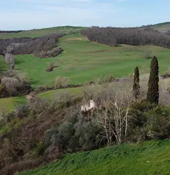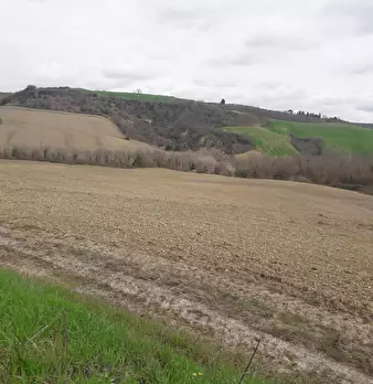 E' un podere di 63,30 ettari con 46 ettari a seminativo , il resto a pascolo, bosco ...da urbanizzare e ripristinare strada di accesso . Ci sono ruderi classificati come collabenti di cui poter recuperare il volume . Bella posizione su un pogg...
