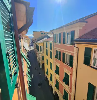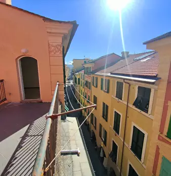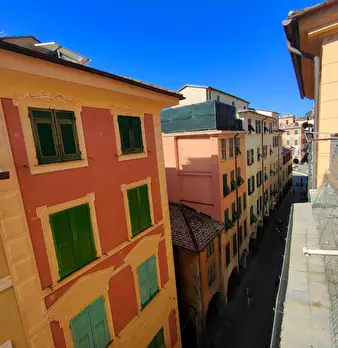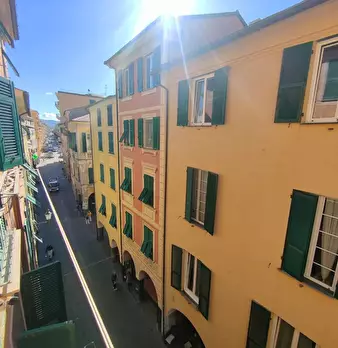 Via Vittorio Veneto, carrugio dritto, nel cuore del centro storico di Chiavari, in rarissimo palazzo con ascensore, vendesi appartamento di 60 mq posto al quarto piano. L'immobile è composto da: ingresso in soggiorno con cottura, due camere da let...