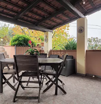 Arcola, Località Baccano, in posizione panoramica e soleggiata, villa di circa 800 mq, frazionata in tre appartamenti e con terreno di circa mq 7.000 in parte pianeggiante ed in parte terrazzato con olivi ed alberi da frutto.Al piano seminterrato ...