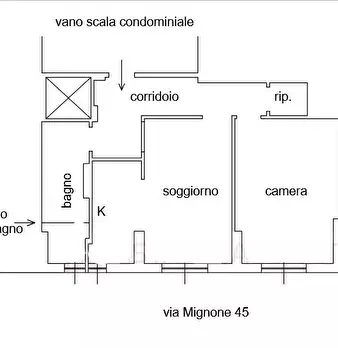 Viena proprietà di appartamento interno 2, posto al piano primo, composto da: ingresso su corridoio, soggiorno con cucinino, ripostiglio, camera e bagno; è annessa una cantina al piano terra; il tutto sviluppa una superficie commerciale di mq. 58,...