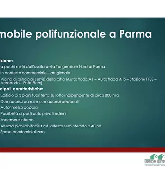 In vendita a Parma, edificio direzionale,( vendibile anche per singolo piano) ideale per aziende che cercano una piattaforma operativa capace di crescere. La superficie complessiva è di 900 mq distribuiti in un layout versatile da distribuire. L’e...