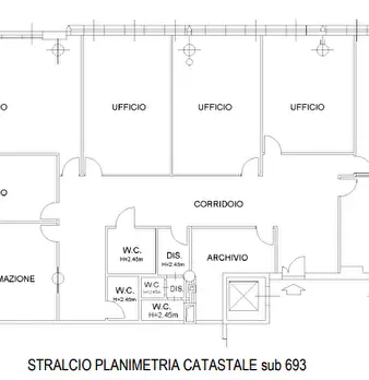 gli uffici sono posti al piano primo (2°pft) e sono composti da: ingresso con area di accoglienza dal quale il corridoio distribuisce a 6 uffici e 1 aula di formazione. A questi locali, si aggiunge: 1 sala riunioni, 1 locale destinato ad archivio ...
