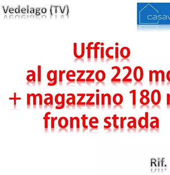 Ufficio 220 mq + magazzino 180 mq a Vedelago (TV) Rif. 1931 In Comune di Vedelago (TV) lungo la Strada Regionale 53, proponiamo la vendita di un ufficio open space di 220 mq che dispone di un magazzino di 180 mq al piano interrato H 3,00 mt. L'...
