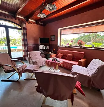 Lasciati incantare dalla magia di questa villa! Tutto in essa è perfetto per trascorrere piacevoli momenti di relax e divertimento. Dalla veranda esterna si puó godere di un panorama da cartolina, mentre dalla piscina scoperta e dalle aree verdi c...