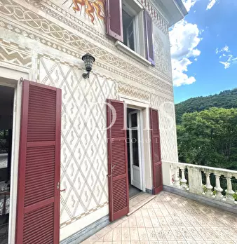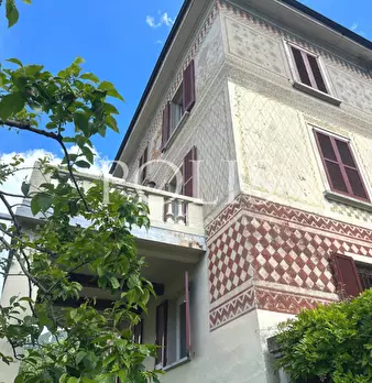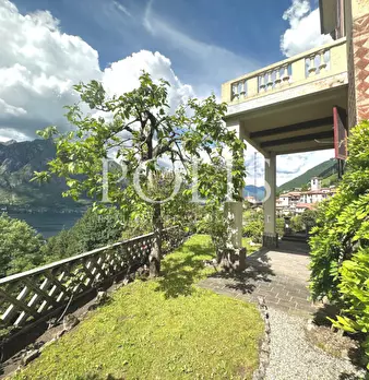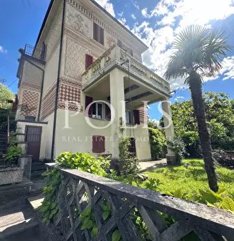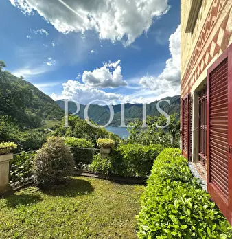 Immersa in uno splendido giardino di oltre 3000 mq, con una vista impagabile del lago di Lugano, proponiamo in vendita, a Claino con Osteno, una villa in stile liberty degli anni '20 con graziosa dependance, quest'ultima frutto di un accurato e at...