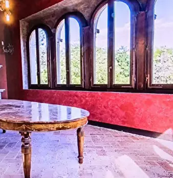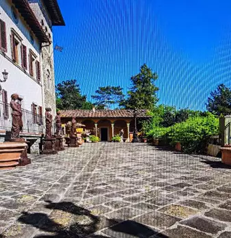 Barberino di Mugello (Mangona) - In alta collina, in antico borgo storico del 1600, panoramica e dominante Proprietà così composta: colonica libera su 4 lati, Villa Padronale, cappella privata, 2 garage, depositi, annessi, piscina (18x3), campo da...
