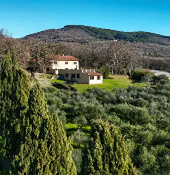 SCARPERIA Dintorni. Trattasi di una residenza realizzata attraverso la ristrutturazione di una antica casa colonica, in posizione dominante e panoramica, distante circa 35 Km da Firenze, con vista lago, grandi camini, soffitti ad antiche volte a ...