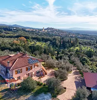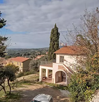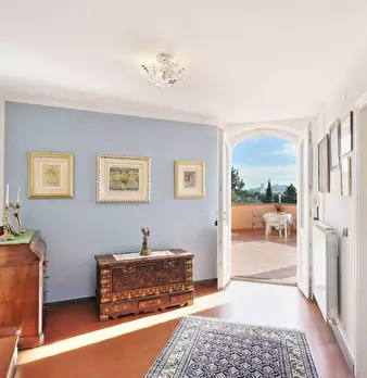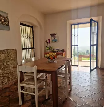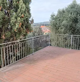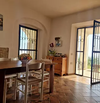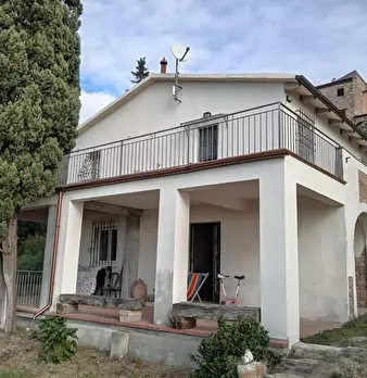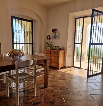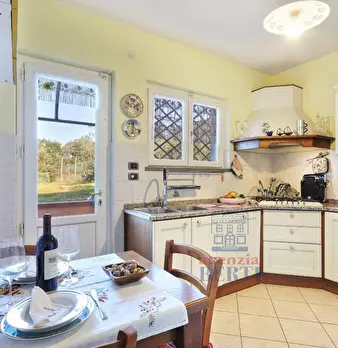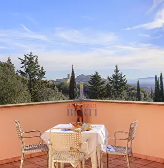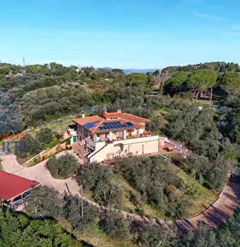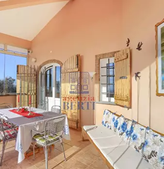 in collina a 8 km dal mare villetta indipendente di mq 180 con terreno di 1200 mq con favolosa vista sul mare, disposta su due piani: al piano terra salone con affaccio su terrazza panoramica con vista da Piombino alla Gorgona, al piano superior...