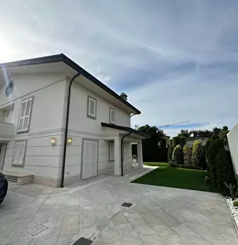 Vittoria Apuana a soli 300 metri dal mare. Prestigiosa villa di 350 mq di recente costruzione con giardino su quattro lati di ca 800 mq. Composta: al piano terra grande soggiorno con sala pranzo, cucina abitabile con accesso nella zona pranzo est...