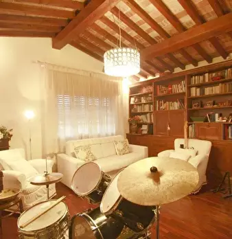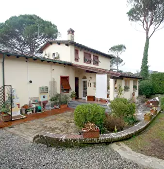 5 km dal centro di Lucca, in zona di campagna lontana da strade principali, villa singola di oltre 450 mq posta su tre livelli composta al piano terra da ingresso/soggiorno con camino, cucina abitabile, tre camere matrimoniali, tre bagni di cui un...