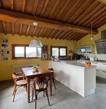 Sulle pendici di un colle, con bellissima vista che spazia sulla campagna sottostante, a breve distanza da San Miniato, vendesi villa ottenuta dalla sapiente ristrutturazione di un fabbricato rurale. L’abitazione, circondata da un curato giardino ...
