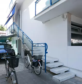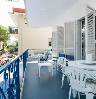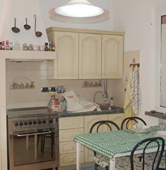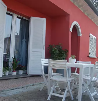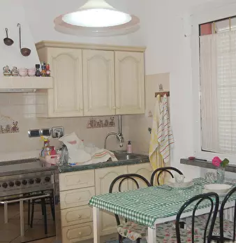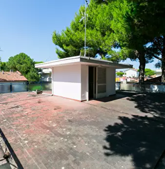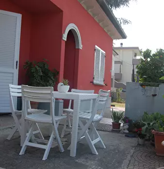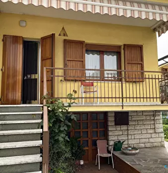 Riccione punta dell'est . casa indipendente libera su 4 lati , composta da appartamento al piano rialzato suddiviso in ingresso , un bagno in fondo al corridoio , una cucina abitabile , sala , due camere matrimoniali, una camera singola ; dalla cu...
