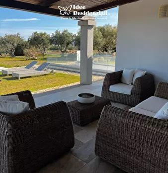 Splendida villa moderna situata all'interno del lussuoso residence "Le ville dell' Arcipelago" in corso di realizzazione. Ingresso privato con accesso ad un luminosissimo soggiorno con ampie vetrate che affacciano sulla piscina, cucina, tre camere...