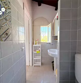 La villa ha, al piano terra, una grande zona living aperta, con la zona soggiorno e l'area cucina, il bagno principale con doccia e un'ampia area destinabile a ripostiglio. Al primo piano, la villa ha disimpegno e corridoio, camera da letto matrim...