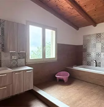 In zona Tivoli, villa di 87 mq circa edificata su un ampio terreno di circa 14.000 mq. L'abitazione è composta da un soggiorno (su cui si affaccia l'ingresso), una cucina abitabile, una camera da letto, una cameretta, un bagno e un comodo locale r...