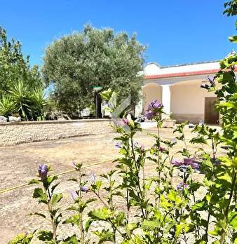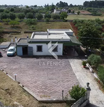 Contrada Guardariello, a confine comunale tra Martina e territorio di Ostuni, nella rinomata Valle D'itria a circa 4,5km dal centro urbano di Martina Franca proponiamo questa soluzione di villa terranea con annesso ampio locale deposito/garage e u...