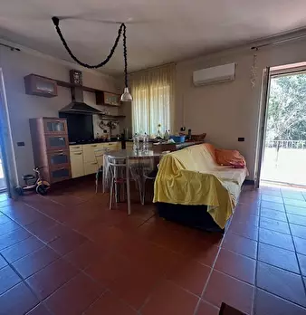 villa residenziale di 148 mq \nSUDDIVISA IN DUE APPARTAMENTI\nAPP SUB 1 piano terra rialzato costituito da una sala e un bagno, attraverso una scala\ninterna si raggiunge un disimpegno al piano primo sottotetto da cui si accede a due camere di ...