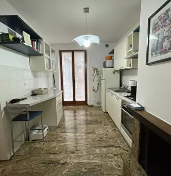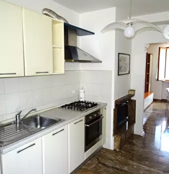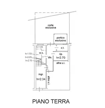 CASTELLEONE DI SUASA, in pieno centro storico, casa a schiera disposta su più livelli; in buonissime condizioni, p terra 49 mq. di cui 9 mq. vano scala, il resto garage (34 mq.), vano termico e bagno, corte esclusiva sul retro della casa di 33 mq...