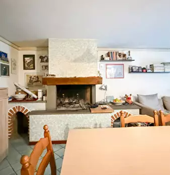 In zona tranquilla e centrale, villetta a schiera completamente ristrutturata nel 2000, sviluppata su 3 livelli: A Piano Terra: Garage, cantina adibita a taverna con camino e locale tecnico/lavanderia A Piano Primo: grande soggiorno con camino, sa...