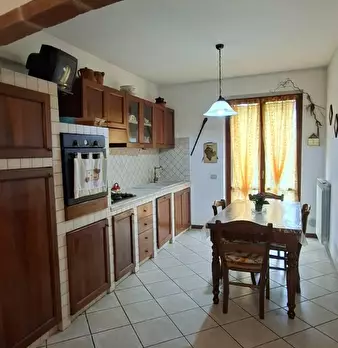 In vendita a La Rosa di Terricciola villetta a schiera con ingresso indipendente da resede esclusivo. L'immobile è composto al piano terra da ingresso, soggiorno con camino, zona pranzo, bagno e cucina con terrazzo, al piano primo da tre camere, b...